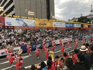 阿波踊り開始時間にギリギリ間に合い、特設席にて観覧しました。